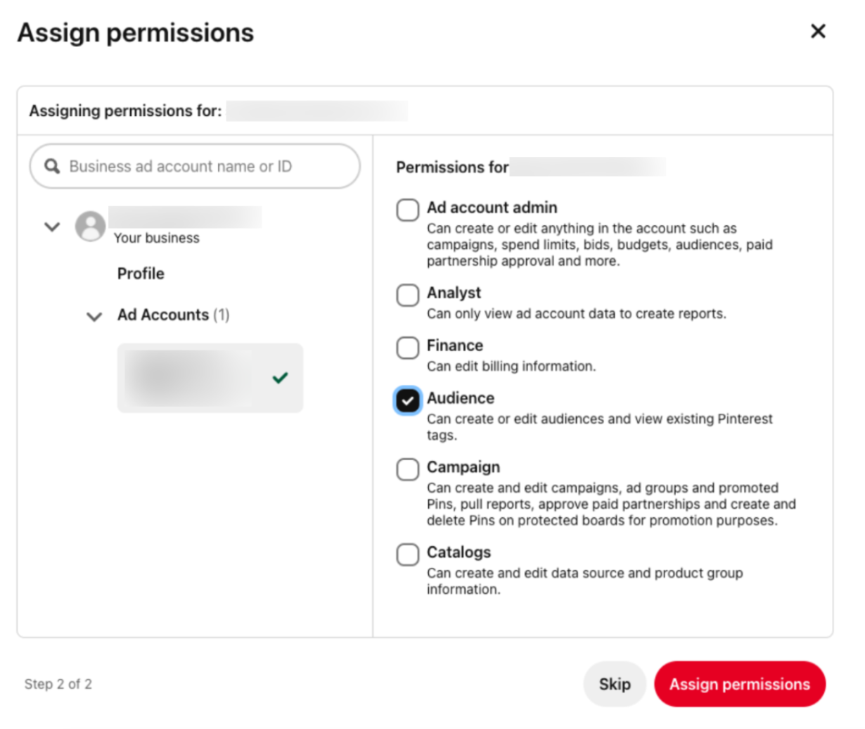 - 새 연결을 추가하면 Pinterest의 오디언스가 채워지는 데 최대 48시간이 걸릴 수 있습니다.