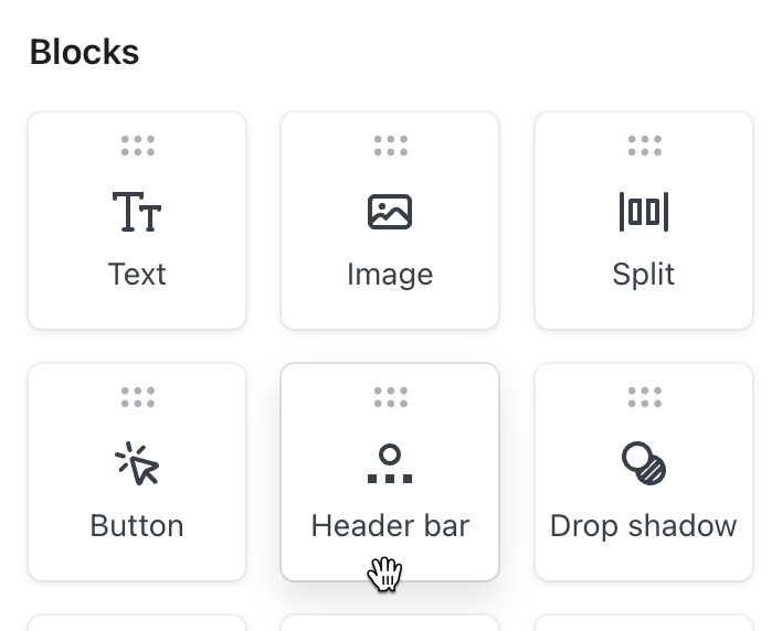 - 이메일 템플릿 내에서 헤더 막대 블록을 캔버스로 드래그합니다.