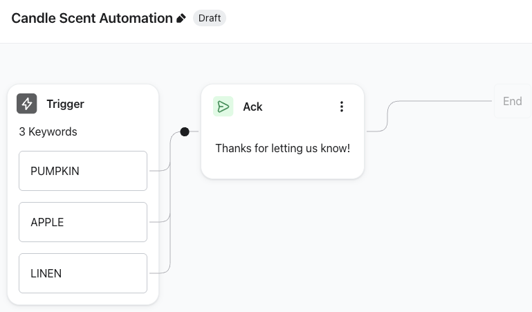 자동화를 켜면 트리거 키워드를 보내는 모든 SMS 구독자에게 전송됩니다.