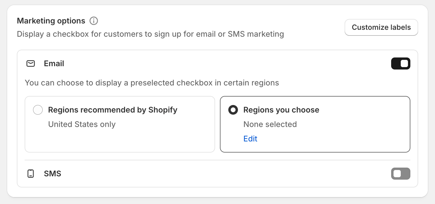 - 이전에 Shopify의 기본 확인란을 통해 결제 시 마케팅 동의를 수집하고