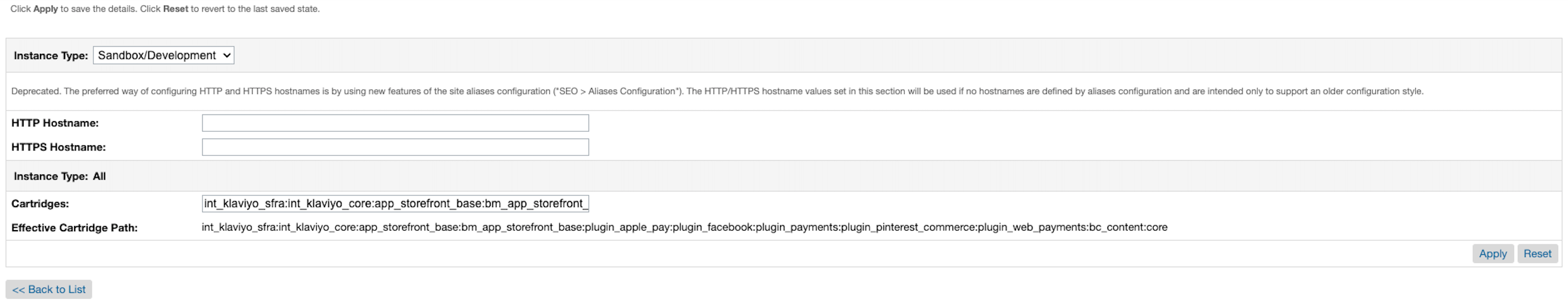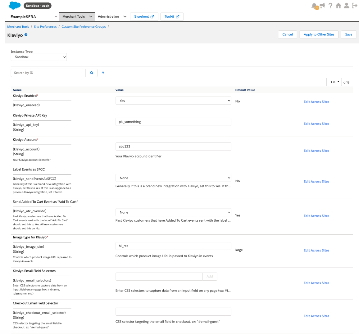 - 프레임워크에 맞는 다른 카트리지(int_klaviyo 또는 int_klaviyo_sfra)에 대해 2~6단계를 반복합니다.