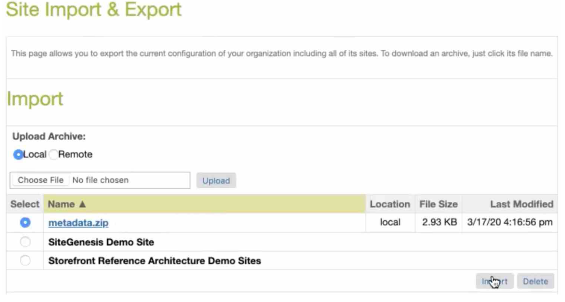 - 메타데이터.zip 파일을 업로드한 다음 가져옵니다.