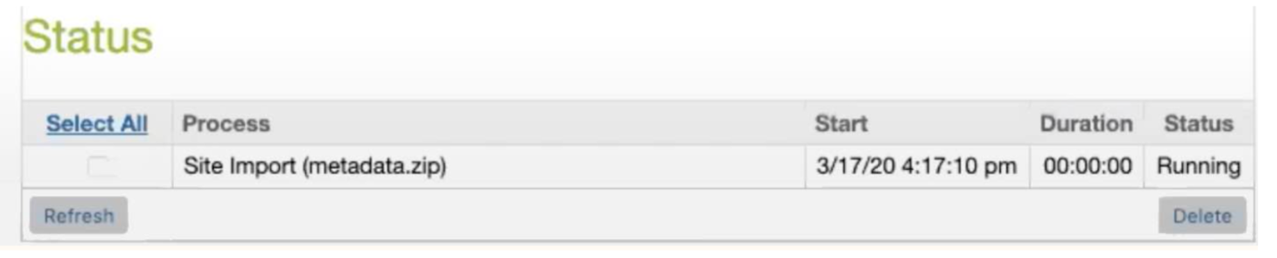 - 이제 페이지 하단의 상태 섹션에서 가져오기가 실행 중인 것을 볼 수 있습니다.