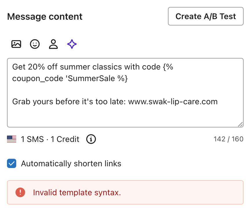 하나의 문자에 여러 개의 쿠폰이 있는 경우에도 오류가 발생합니다. SMS당 1개의 쿠폰만 허용되므로 실수로 2개의 다른 쿠폰을 사용하지 않았는지 확인하세요.