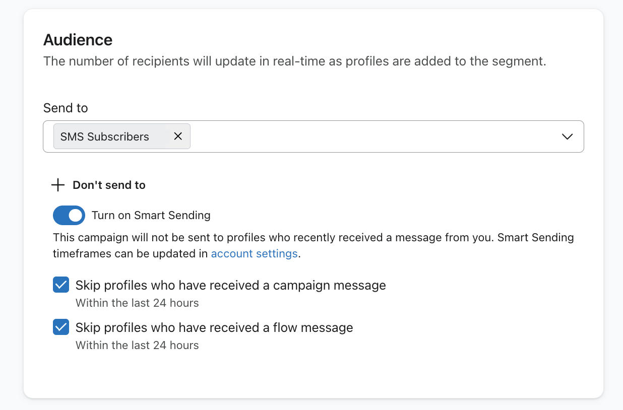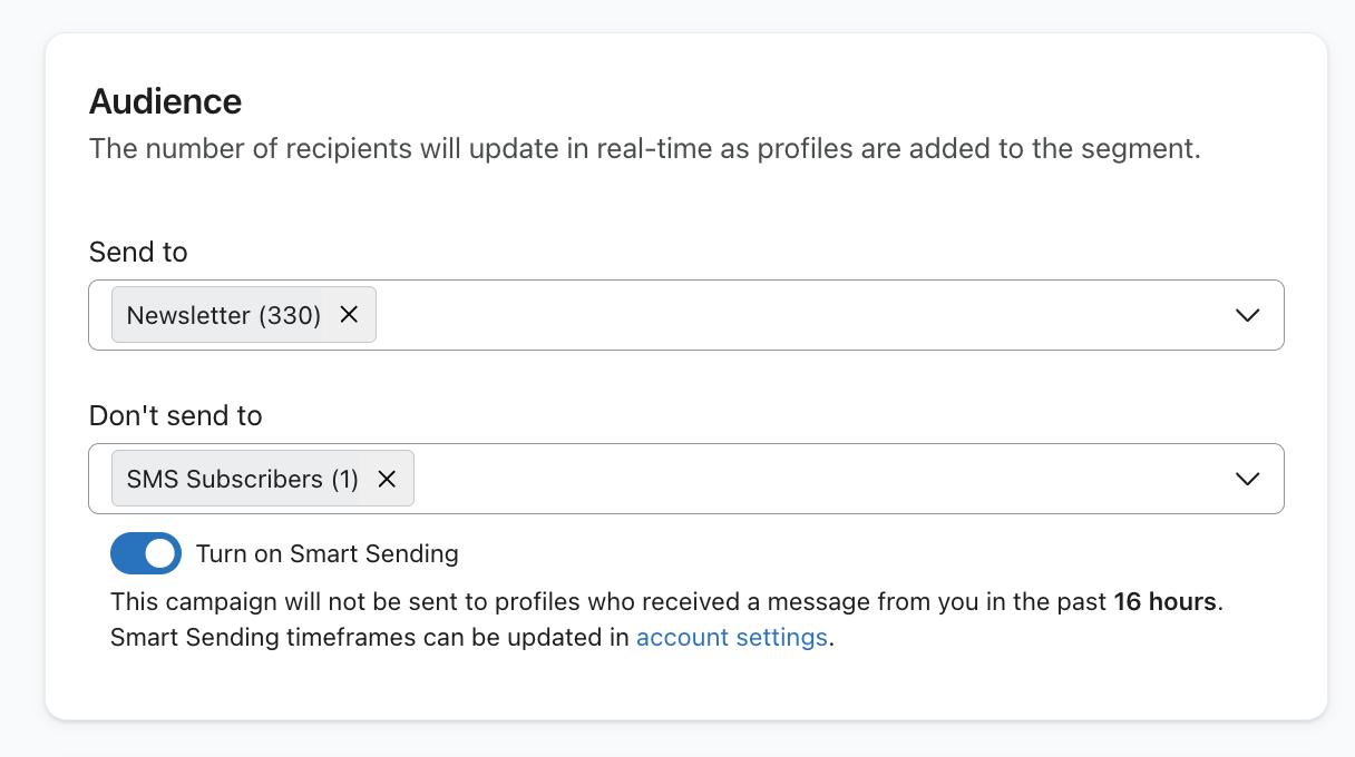 캠페인을 보내든 플로우를 설정하든 관계없이 두 채널 모두에 메시지를 보낼 때 SMS 가입자에게 우선순위를 지정하세요. 이메일 구독자도 중요하고 소홀히 해서는 안 되지만, 전화번호를 알려주는 것은 이메일보다 더 개인적인 일입니다. 따라서 일반적으로 SMS 가입자를 더 세심하게 관리하고 선호하는 것이 좋습니다.