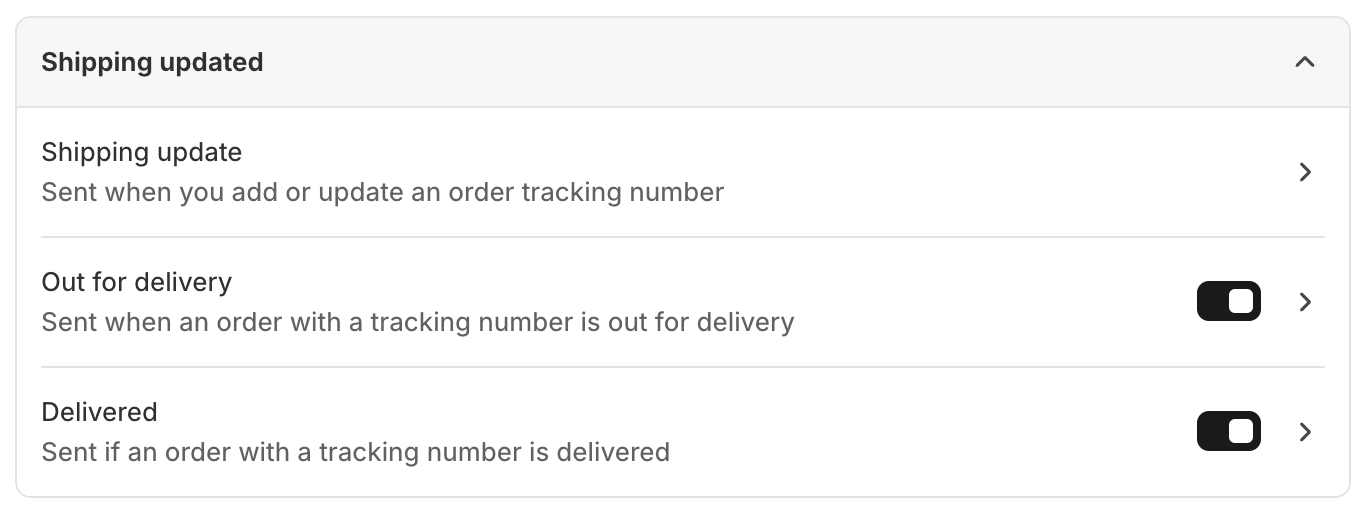 - 배송 확인 이메일을 끄는 경우 스토어에서 품목이 자동으로 주문 처리되지 않도록 해야 합니다. 이를 확인하려면: