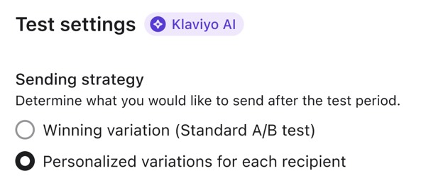 테스트 전략을 선택할 수 있는 옵션은 총 프로필 수가 40만 개 이상인 계정에서만 사용할 수 있습니다. 계정이 자격을 갖추지 못한 경우, 클라비요는 우승 변형 테스트 전략을 사용합니다.