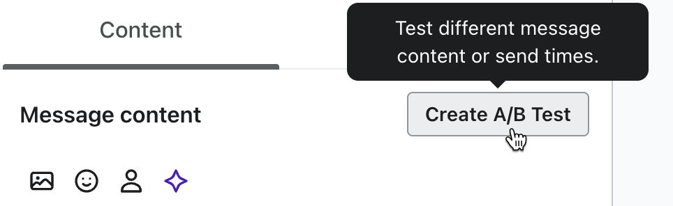 - 메시지 콘텐츠 상자에서 메시지를 작성합니다(콘텐츠를 추가하기 전에는 A/B 테스트를 만들 수 없습니다).