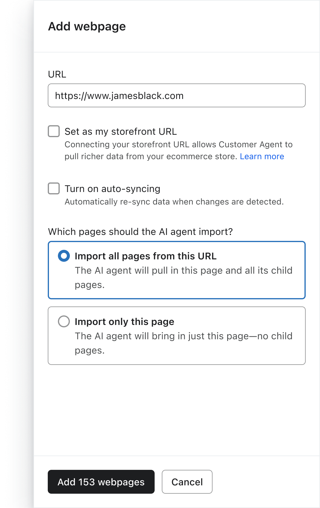 고객 에이전트의 연결된 웹사이트에 대해 자동 재색인(자동 동기화)을 사용하도록 설정하는 방법을 알아봅니다. 이 프로세스를 자동화하면 상담원이 항상 웹사이트의 제품 및 정책에 대한 최신 정보를 사용하여 질문에 답변할 수 있으므로 지식창고를 새로 고치는 수고를 줄이고 오래된 답변으로 인해 발생하는 지원 티켓을 방지할 수 있습니다.