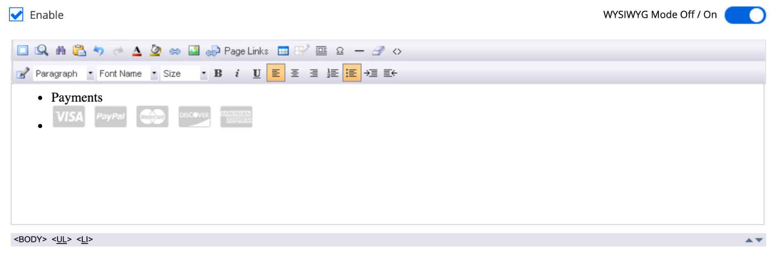 - Klik op het schuifje naast WYSIWYG Mode Off / On om de weergave naar de HTML-editor te schakelen.