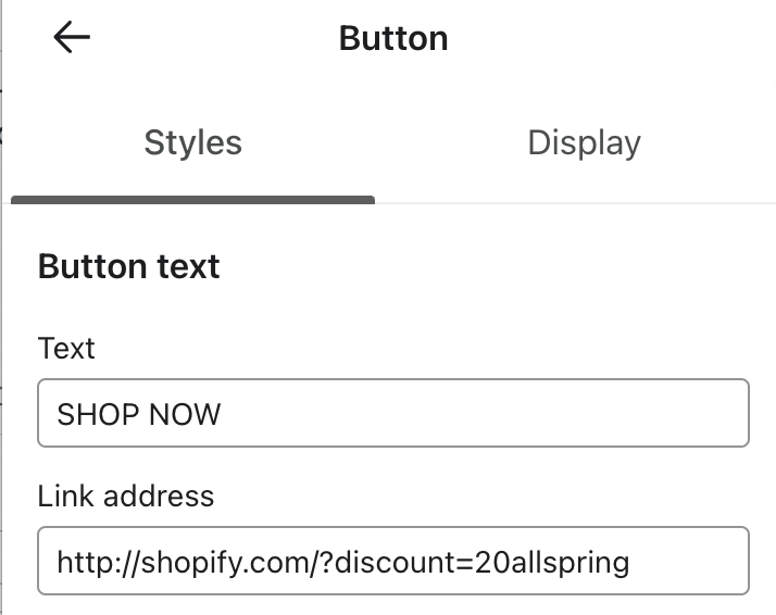Leer hoe je een link kunt toevoegen in je e-mail of sms die een couponcode direct toepast op de Shopify winkelwagen van een shopper. Als de coupon al is toegepast op het winkelwagentje, is het makkelijker voor hen om te profiteren van de korting en snel te kopen. Om dit in te stellen: