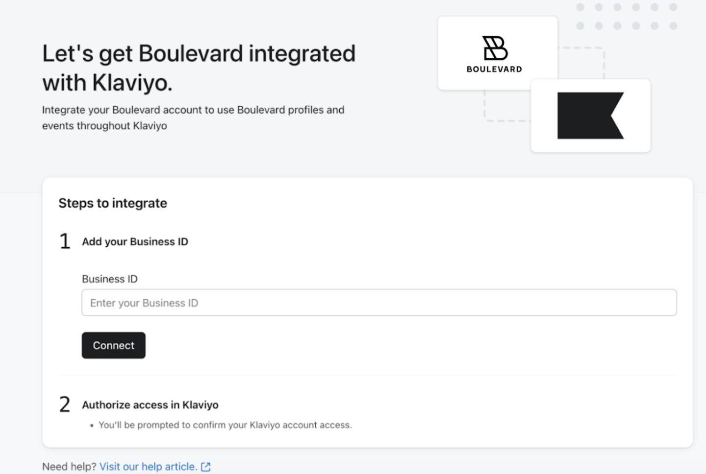 - Voer je Boulevard Business ID in en klik op Verbinden.