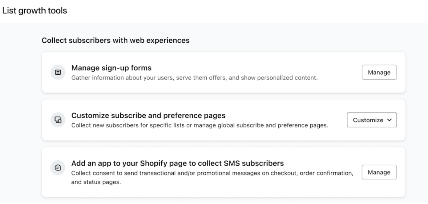Houd er rekening mee dat je Shopify integratie-instellingen Synchroniseer uw Shopify sms abonnee naar Klaviyo aangevinkt wilt laten om Shopify abonnee verzameld via andere middelen (zoals Shopify formulieren) te blijven synchroniseren naar Klaviyo.