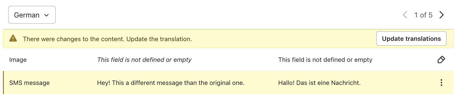 Als je de originele inhoud van het bericht bewerkt nadat je al vertaald hebt, verschijnt er een waarschuwing bij de controlestap in de Vertaalsectie.