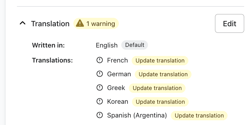 - Klik op Bewerken in de sectie Vertaling.