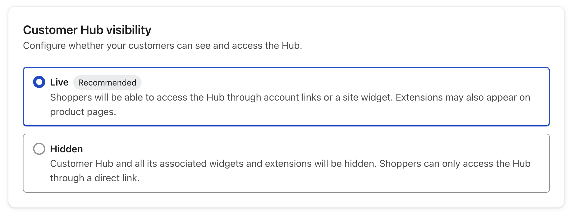 Zichtbaarheid publiceren: zet Klaviyo Customer Hub op Live.