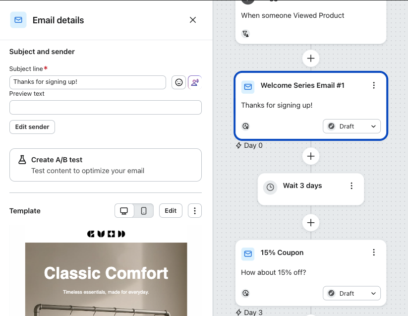Skorzystaj ze standardowej sekwencji powitalnej Klaviyo.
