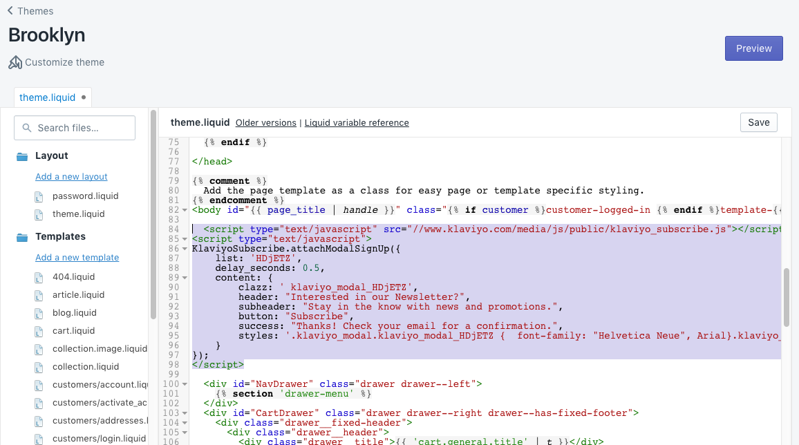 W tym artykule wyjaśnimy, jak uruchomić te formularze na Twojej stronie, dodając kod formularza Klaviyo do motywu Twojego sklepu Shopify.