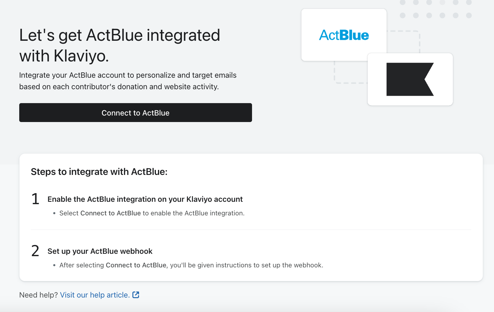 - Wybierz opcję Połącz z ActBlue.