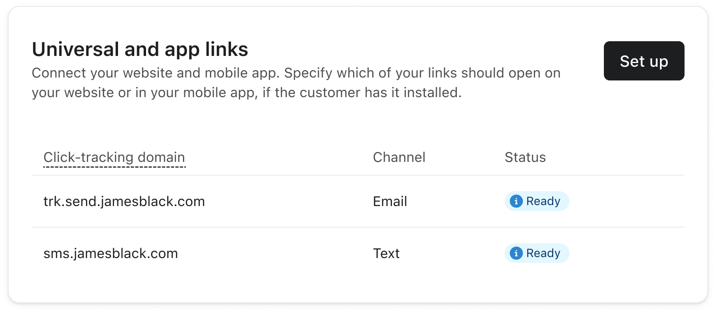 Na stronie linków aplikacji Universal & możesz skonfigurować specjalne linki w wiadomościach e-mail i wiadomościach tekstowych. Linki uniwersalne i linki do aplikacji kierują klientów do treści w Twojej aplikacji mobilnej lub - jeśli aplikacja nie jest zainstalowana - do tych samych treści w Twojej witrynie.