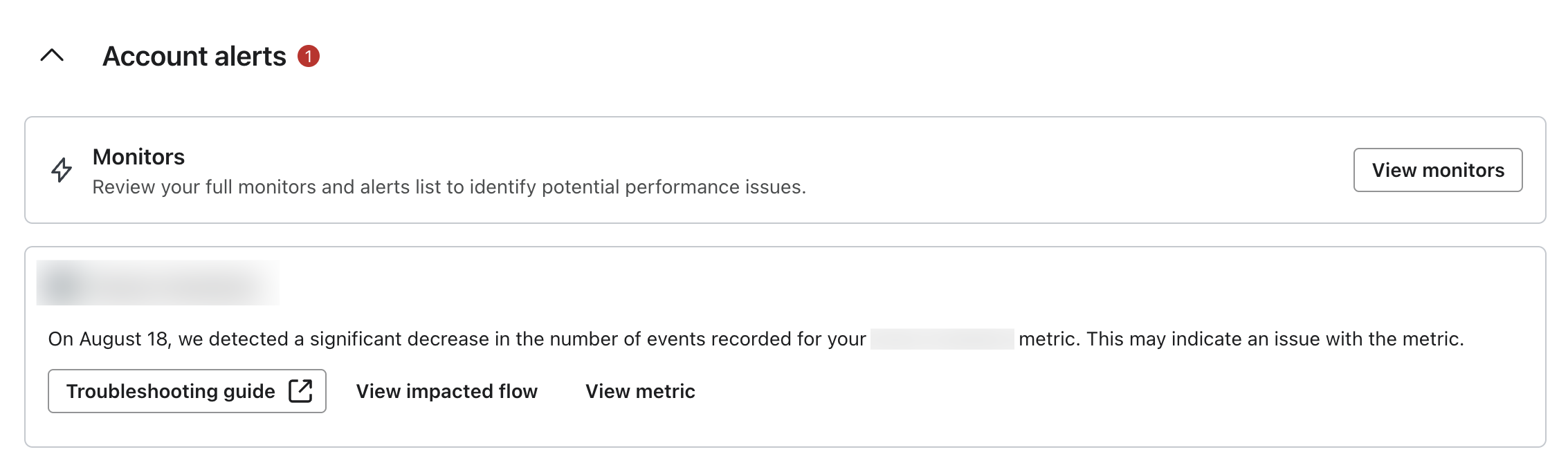 Gdy wykryty zostanie nietypowy spadek aktywności metryki, otrzymasz powiadomienie na kilka różnych sposobów: