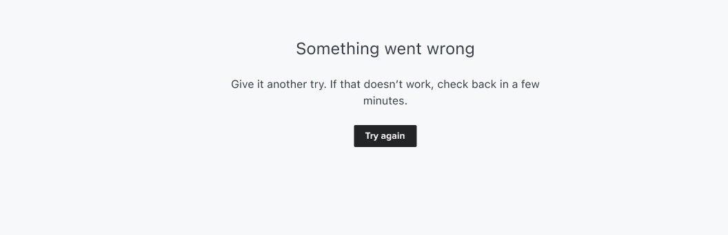 Jeśli występuje większy problem z danym kanałem lub infrastruktura Klaviyojest chwilowo nieosiągalna, możesz zobaczyć komunikat o błędzie o treści "Coś poszło nie tak". Zaleca się ponowną próbę lub odświeżyć stronę i spróbować ponownie załadować raport.