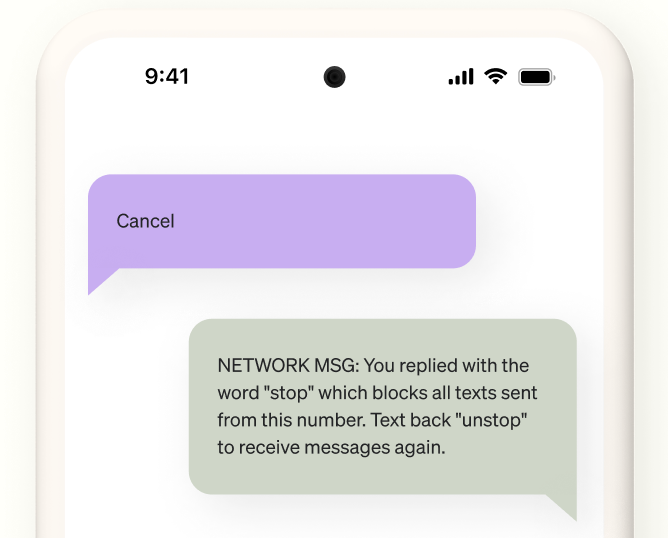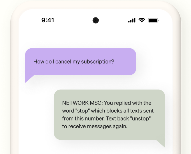 Zwróć uwagę, że wiadomość sieciowa zawsze zawiera słowo "stop", niezależnie od słowa kluczowego opt-out, które subskrybent faktycznie wysłał SMS-em.