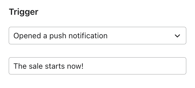 - Formularz uruchomi się tylko wtedy, gdy zdarzenie reprezentuje akcję podjętą przez klienta w aplikacji. Innymi słowy, formularz będzie uruchamiał się tylko wtedy, gdy zdarzenie zostało wysłane do mobilnego zestawu narzędzi programistycznych (SDK) Klaviyo za pośrednictwem Twojej aplikacji mobilnej.