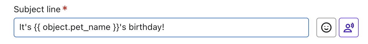 Możesz na przykład użyć znacznika {% object %} w temacie wiadomości, aby bezpośrednio wyświetlić nazwę zwierzaka klienta.