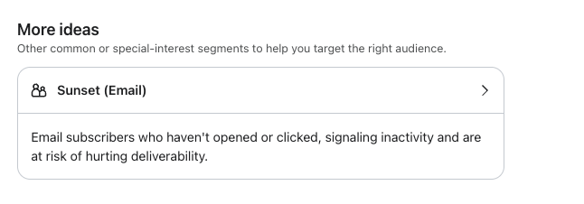 Najpierw przejdź do biblioteki segmentów, a zobaczysz opcję "Sunset (Email)".