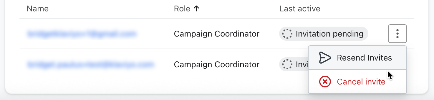 - Proszę kliknąć 3 kropki obok użytkownika, do którego ma zostać ponownie wysłane zaproszenie.