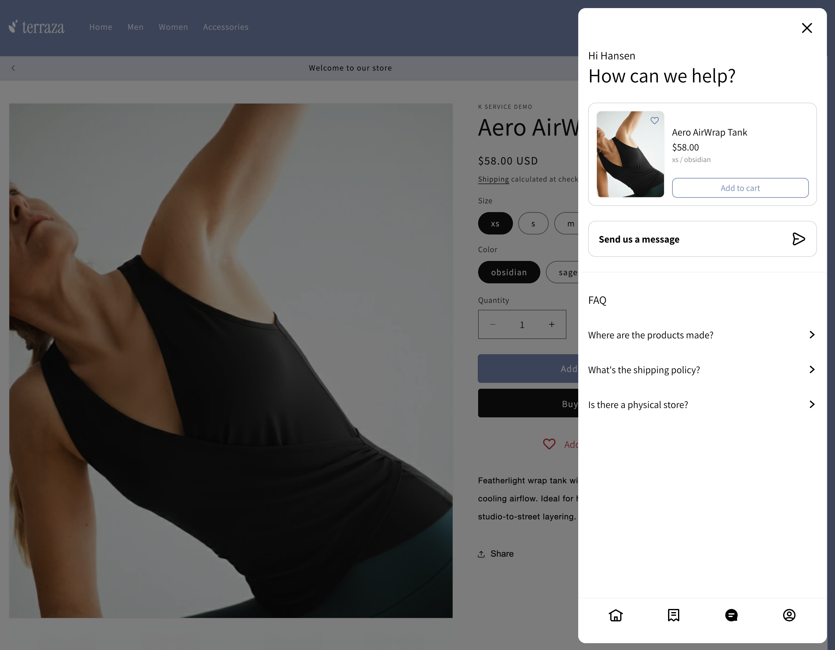</script>Hubpowinien teraz wyświetlać dodatkową kartę produktu dla PDP przeglądanego przez kupującego na karcie "Chat", jeśli masz ją włączoną.