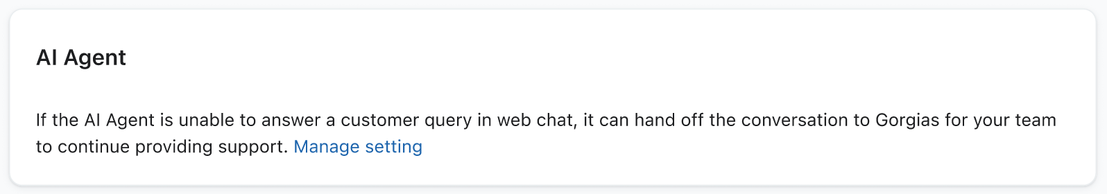 - Jeśli korzystasz z Klaviyo Customer Hub i Klaviyo AI Agent: Możesz przekazać zapytania klientów, na które sztuczna inteligencja Service Agent nie może odpowiedzieć Twojemu zespołowi w Gorgias. Kliknij Zarządzaj ustawieniami, aby przejść do ustawień agenta Klaviyo AI i wybierz Gorgias jako swojego agenta.