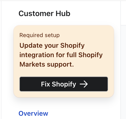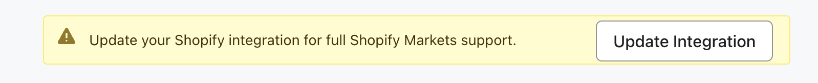 - Jeśli nie widzisz ostrzeżenia, oznacza to, że Twoje integracje Shopify są już aktualne, a obsługa Shopify Markets działa prawidłowo.