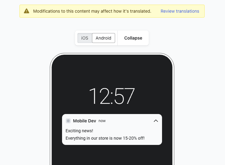 Przed tłumaczeniem upewnij się, że powiadomienie push jest w pełni edytowane i gotowe do wysłania w oryginalnym języku. W przeciwnym razie będziesz musiał ponownie przejść przez proces tłumaczenia, jeśli dokonasz zmian w oryginalnej treści.