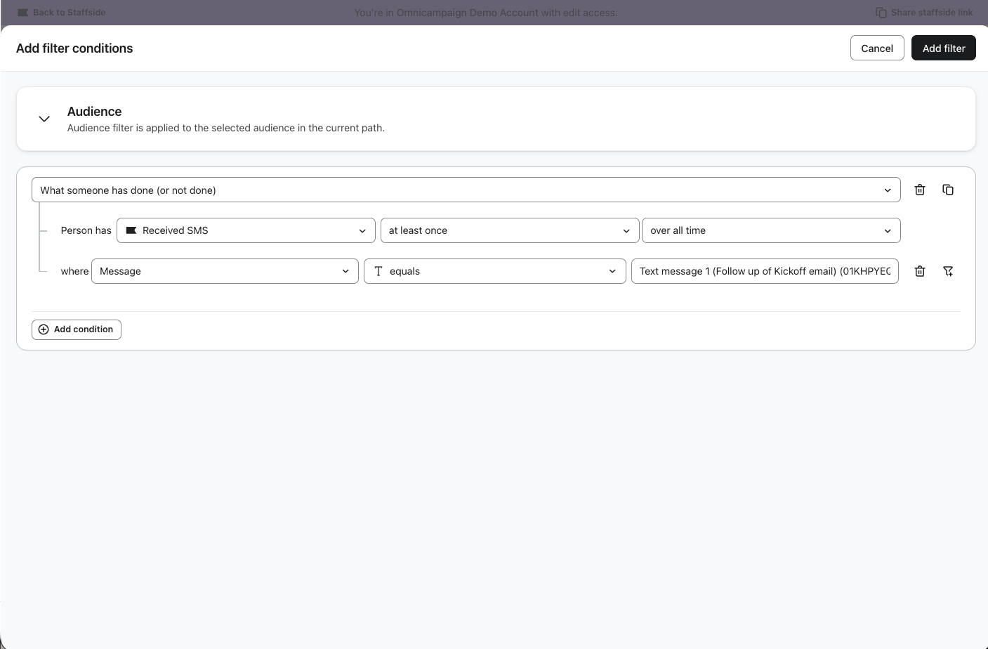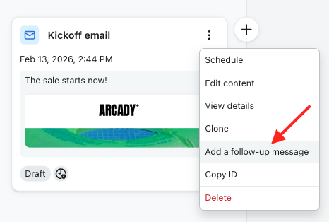 Twoja wiadomość uzupełniająca pojawi się teraz w Twojej kampanii wszechanałowej z już zastosowanymi filtrami odbiorców. Z tego miejsca możesz edytować jego treść, dostosować czas wysyłki lub wprowadzić inne zmiany - zachowuje się on tak samo, jak każda inna wiadomość.