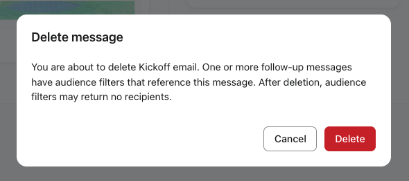 Jeśli usuniesz wiadomość, do której odnoszą się kolejne wiadomości, wyświetli się ostrzeżenie informujące, że kolejne wiadomości mają powiązane warunki filtrowania z tą wiadomością.