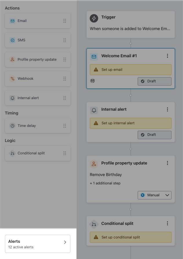 Os fluxos são altamente personalizáveis e podem variar em complexidade. Os recursos de solução de problemas foram projetados para serem abrangentes e cobrir problemas comuns que podem se aplicar à maioria das contas da Klaviyo.