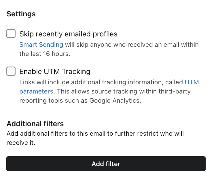 Bestäm om du vill aktivera UTM-spårning för en viss e-post. -