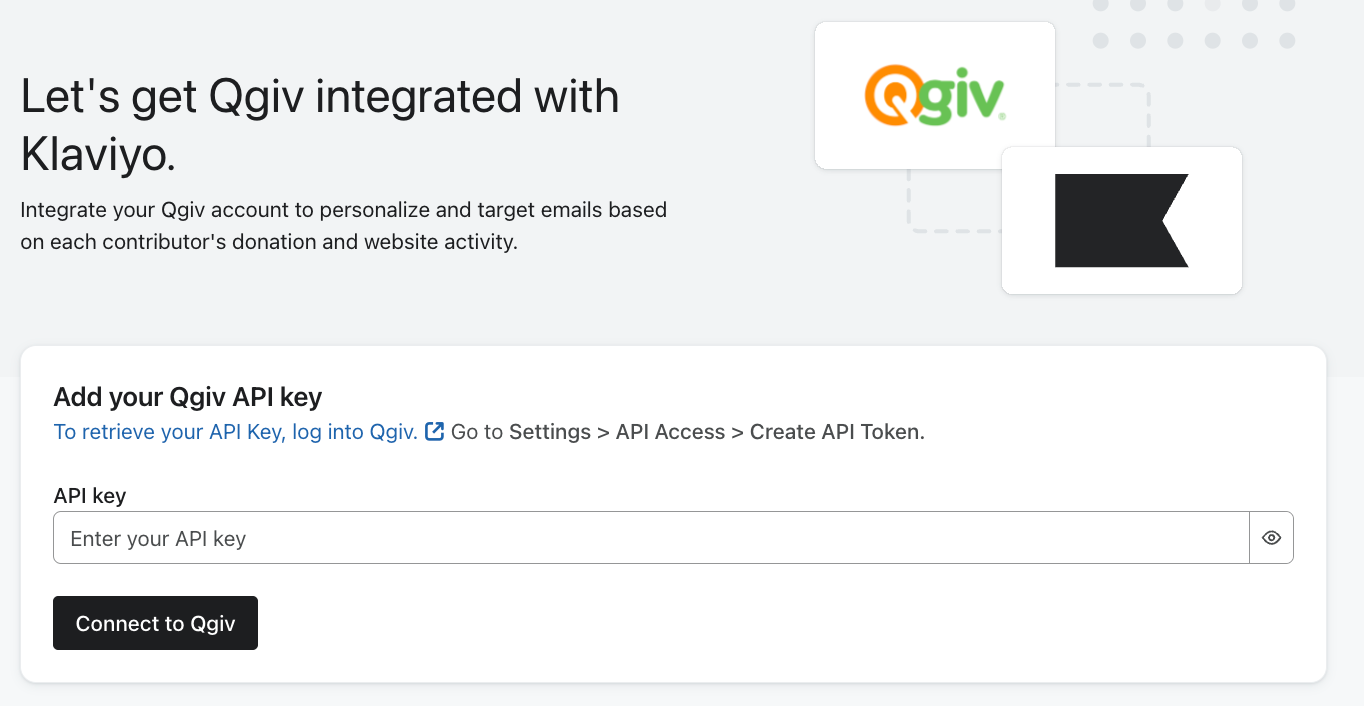 Först måste du generera en API -token i Qgiv och sedan aktivera integrationsprogrammet i Klaviyo.
