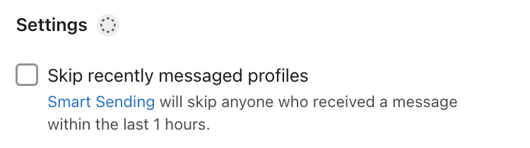 - I sidofältet för pushnotis-detaljer väljer du om du vill Hoppa över nyligen meddelade profiler, vilket möjliggör/inaktivera Smart Sending. Denna inställning är inaktiverad som standard. Vi rekommenderar att du håller den borta för välkomstserie flöde.
