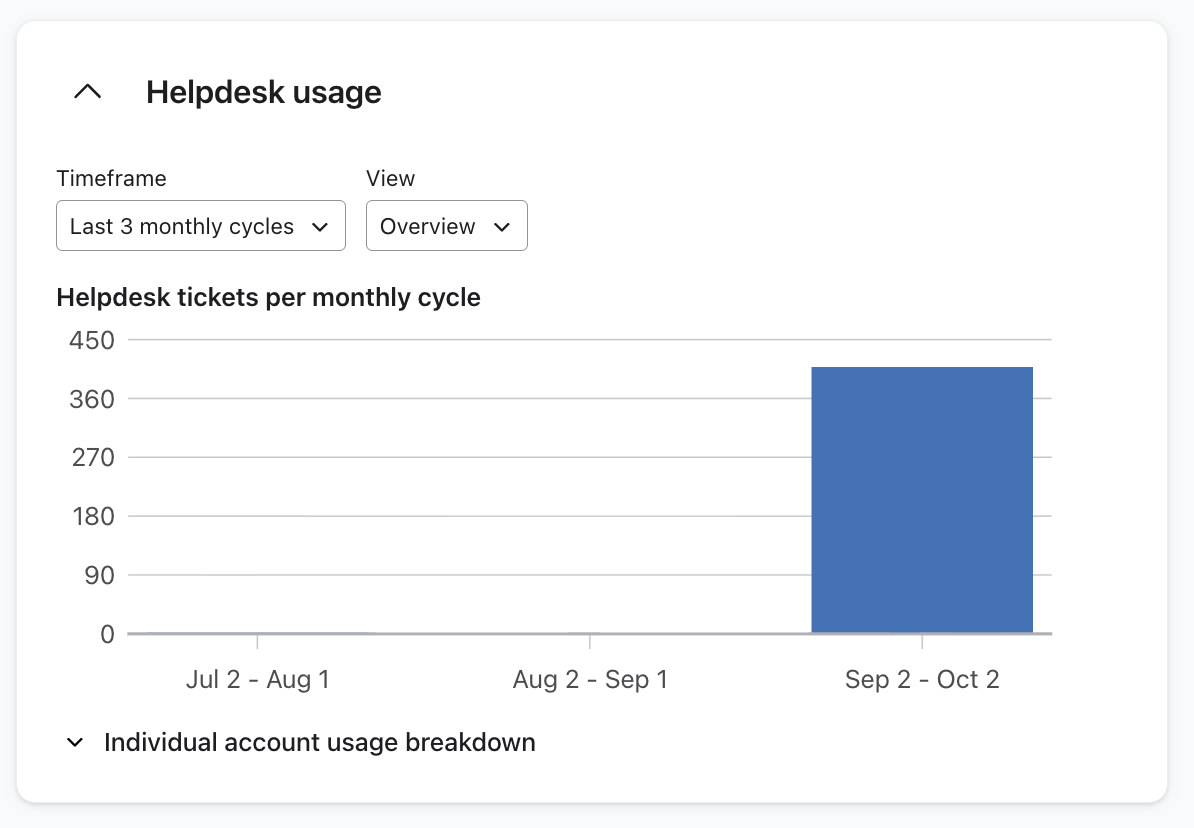 Den första grafen i fliken Kontoanvändning visar din historiska profilanvändning per månadscykel.