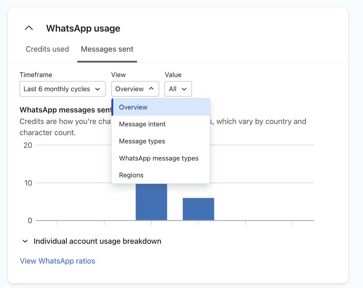 Användningen av WhatsApp-meddelanden visar hur många meddelanden du har skickat (men inte hur många krediter du har använt). Det syns: