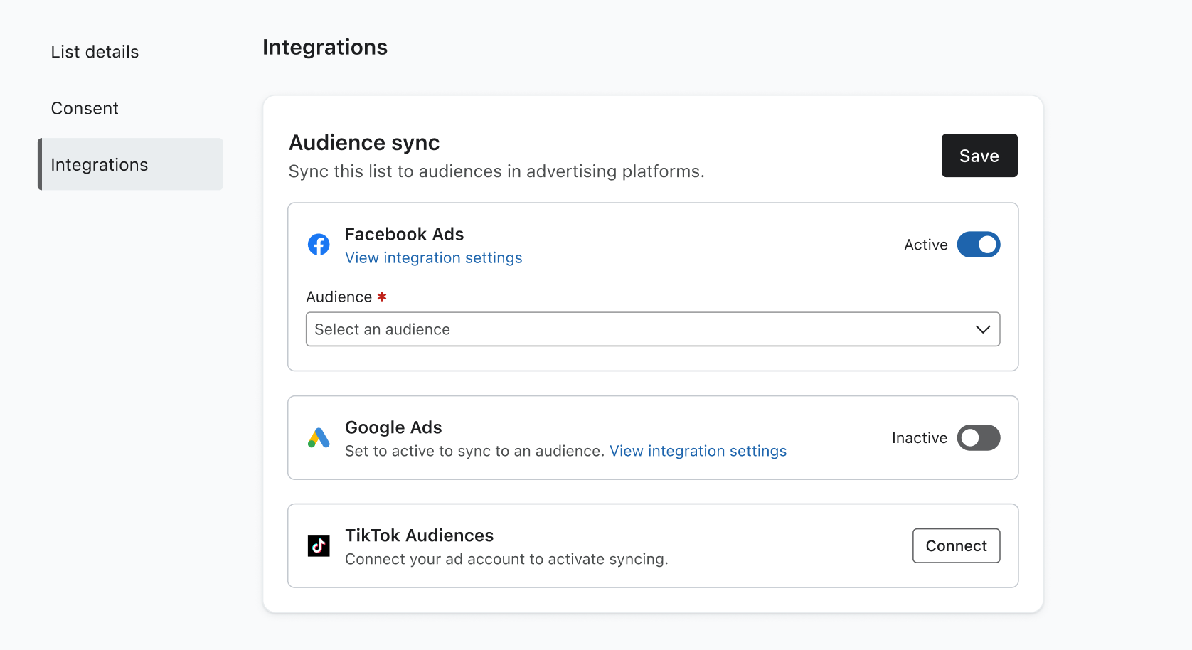 - Anslut en Klaviyo-lista eller ett segment till en TikTok-målgrupp.