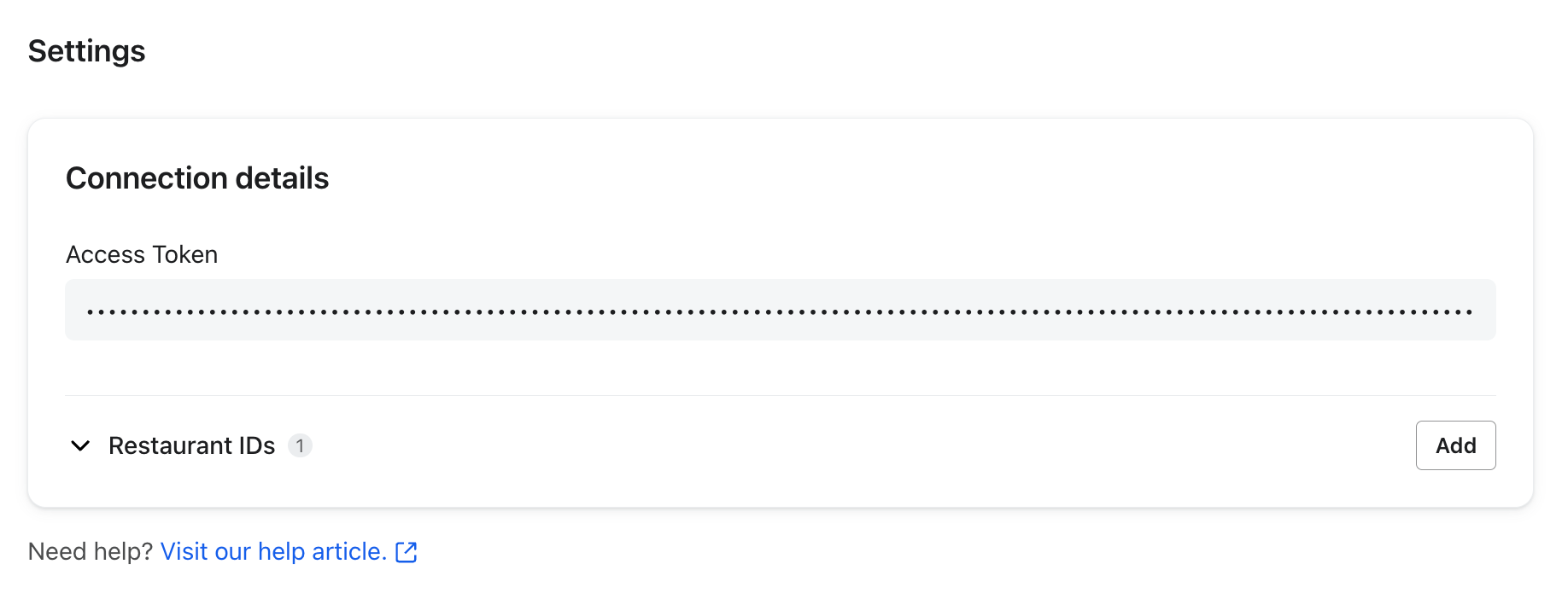 Om du utökar din verksamhet eller lägger till nya platser på ditt Toast-konto efter din första integration kan du lägga till dessa restaurang-ID:n i dina integrationsinställningar för att säkerställa att data flödar för dessa specifika platser.