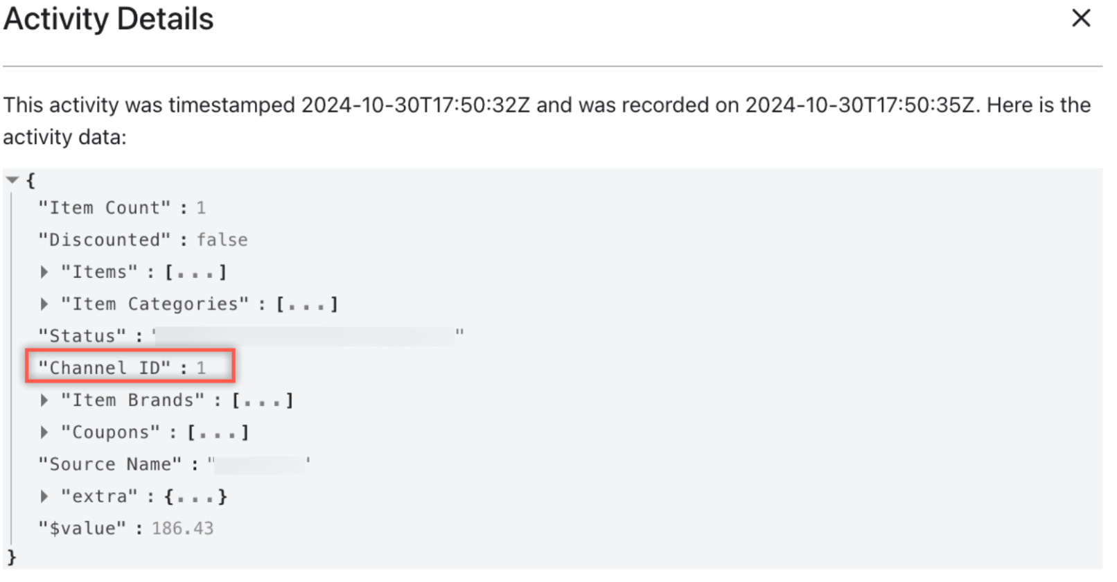 Egenskapen kanal-ID anger vilken BigCommerce butik som kunden interagerade med.
