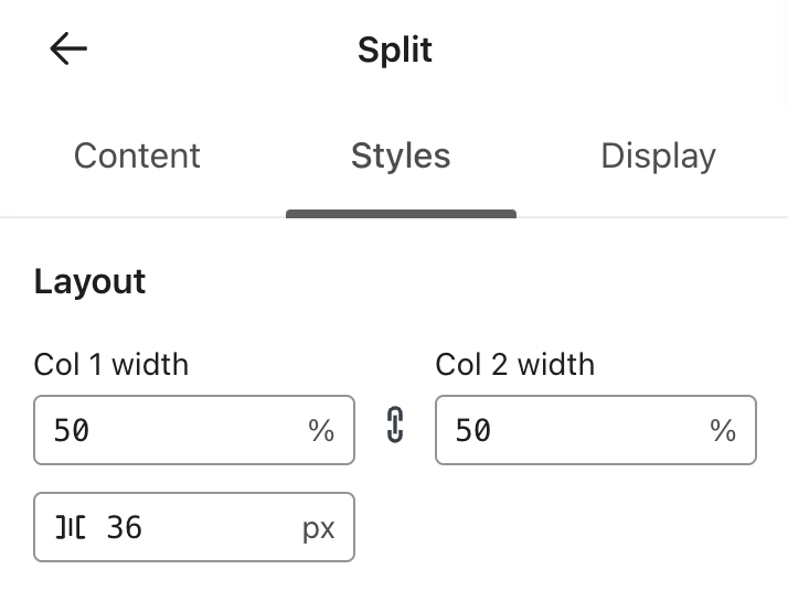Det finns 3 sätt att ordna innehåll sida vid sida i Klaviyo:s e-postredigerare: delning block, kolumner och tabell block. Varje alternativ erbjuder vissa fördelar och kompromisser. En delning block är bäst när: