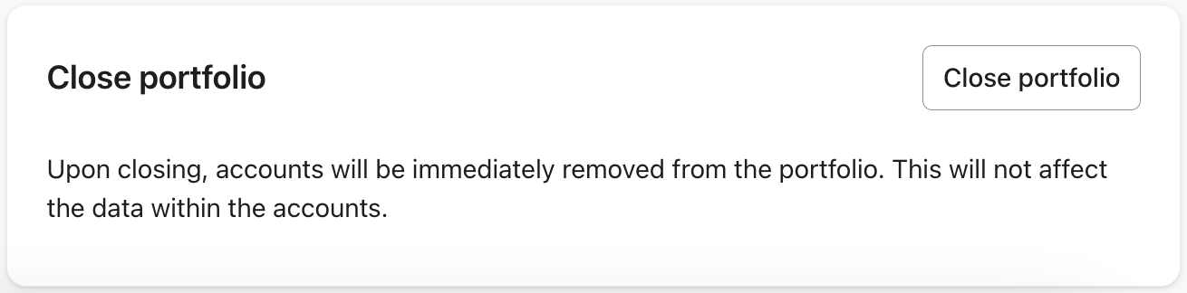När du stänger en portfölj raderas den och alla data i den portföljen.