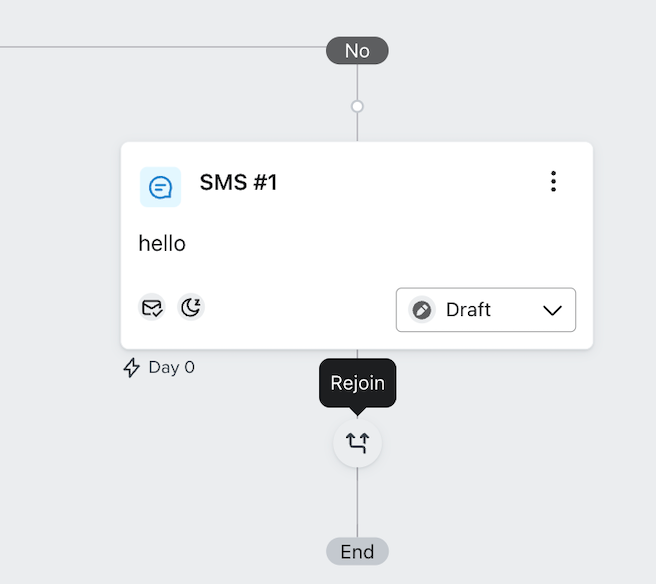 När du drar in en delning i ett flöde måste du definiera de förutsättningar som ska förgrena mottagare och skicka dem på unika vägar. Under utgångspunkten för varje sökväg finns en ikon för "rejoin".