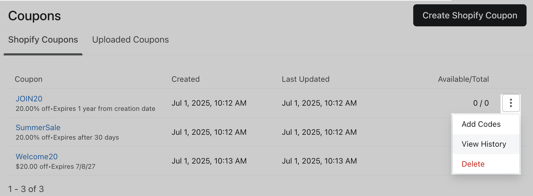 - Hitta din kupong och klicka på de 3 prickarna bredvid den.
